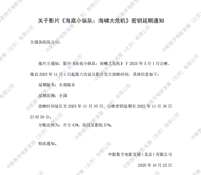 《海底小纵队:海啸大危机》密钥延期及调整分账比例的通知