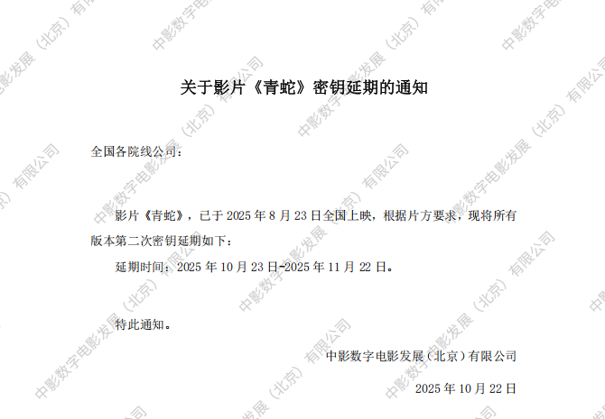 《青蛇》第四次密钥延期的通知