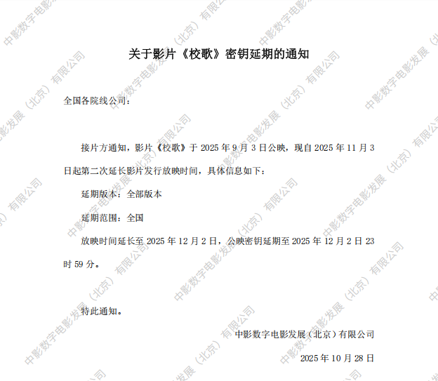《校歌》第一次密钥延期的通知
