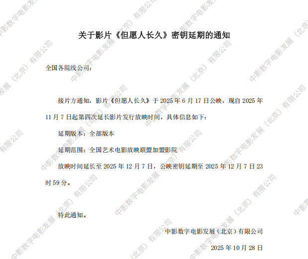 《但愿人长久》第二次密钥延期的通知