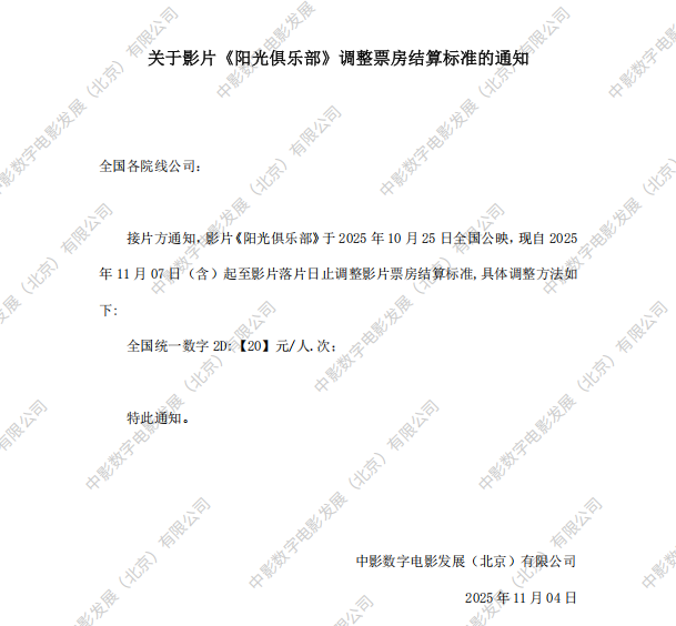 关于影片《阳光俱乐部》撤档的通知