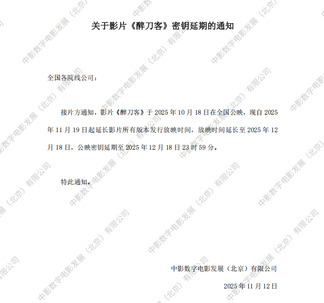 《醉刀客》第二次密钥延期的通知