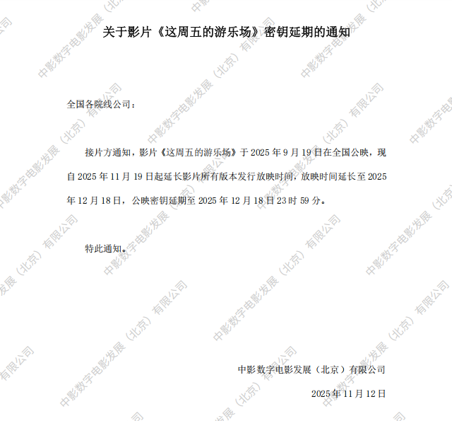 《这周五的游乐场》第三次密钥延期的通知