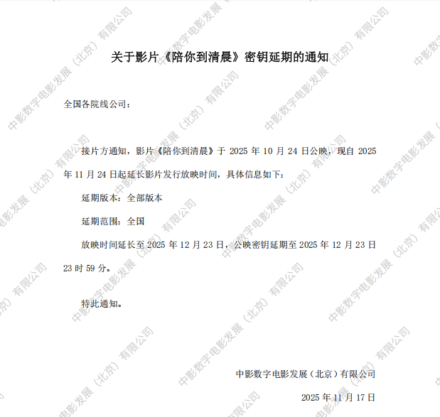《陪你到清晨》第二次密钥延期的通知