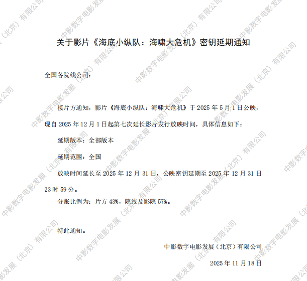 《海底小纵队:海啸大危机》密钥延期及调整分账比例的通知