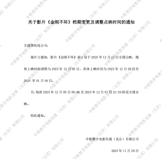 《金刚不坏》发行通知