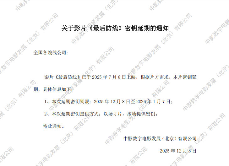 发行通知 » 《最后防线》第五次密钥延期的通知