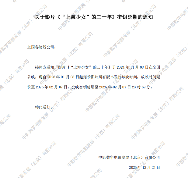 发行通知 » 《“上海少女”的三十年》第十四次密钥延期的通知
