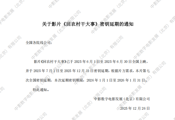 《回农村干大事》第八次全国密钥延期的通知