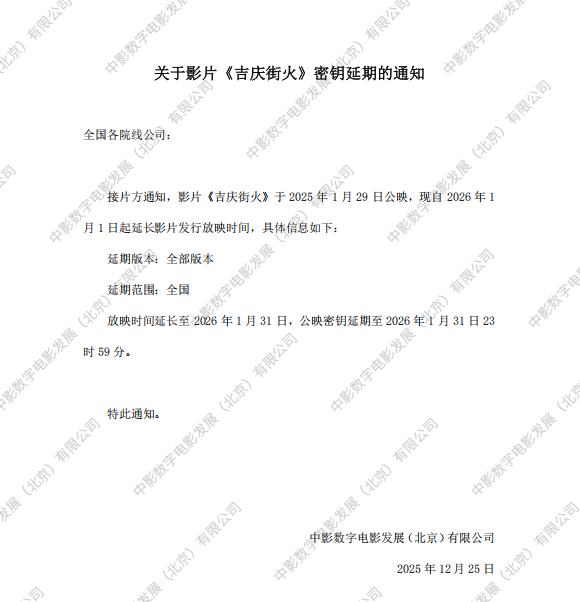 《吉庆街火》第十二次密钥延期的通知