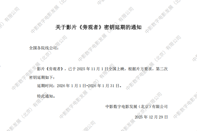 《旁观者》密钥延期的通知