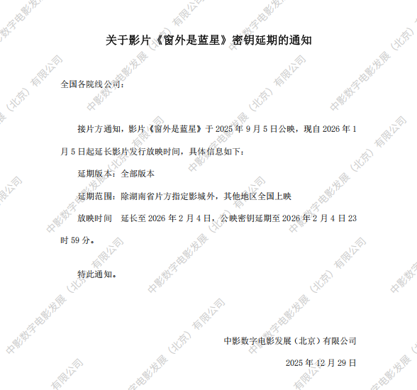 《窗外是蓝星》第二次密钥延期的通知