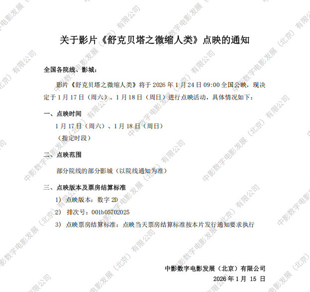发行通知 » 《舒克贝塔之微缩人类》点映的通知