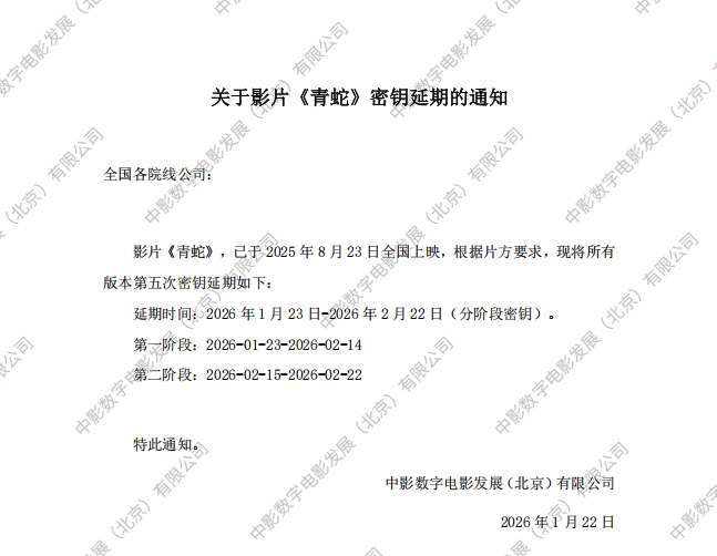 《青蛇》第四次密钥延期的通知