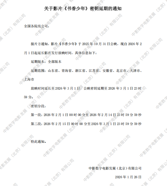 《书香少年》第二次密钥延期的通知