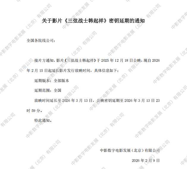 发行通知 » 《三弦战士韩起祥》第二次密钥延期的通知