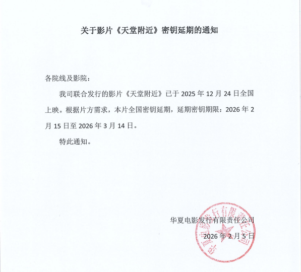 《天堂附近》改档的通知