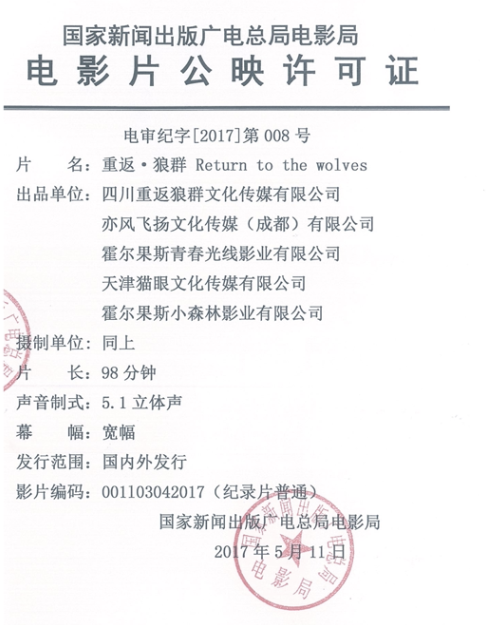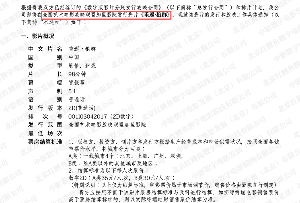 全国艺术电影放映联盟《重返·狼群》排片指导建议函