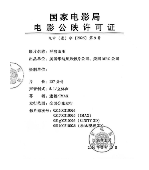 发    行:中国电影产业集团股份有限公司(甲区)