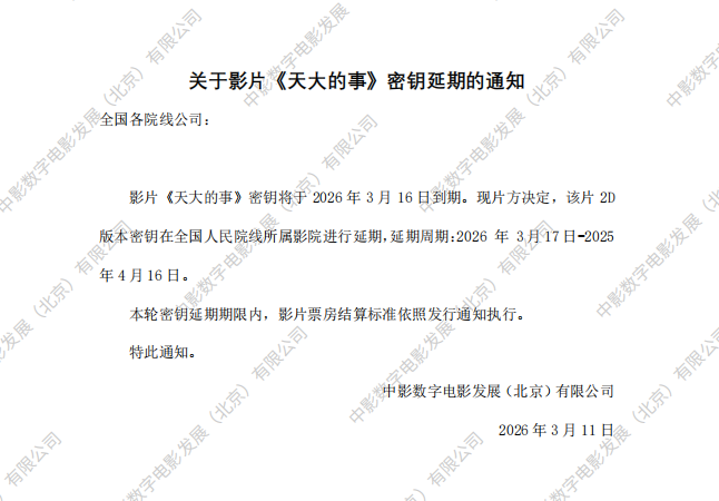 发行通知 » 《天大的事》第六次密钥延期的通知