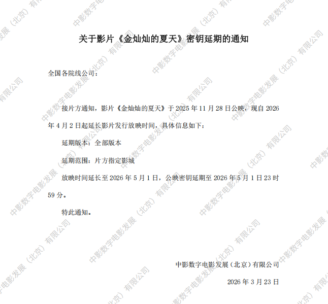 发行通知 » 《金灿灿的夏天》第四次密钥延期的通知