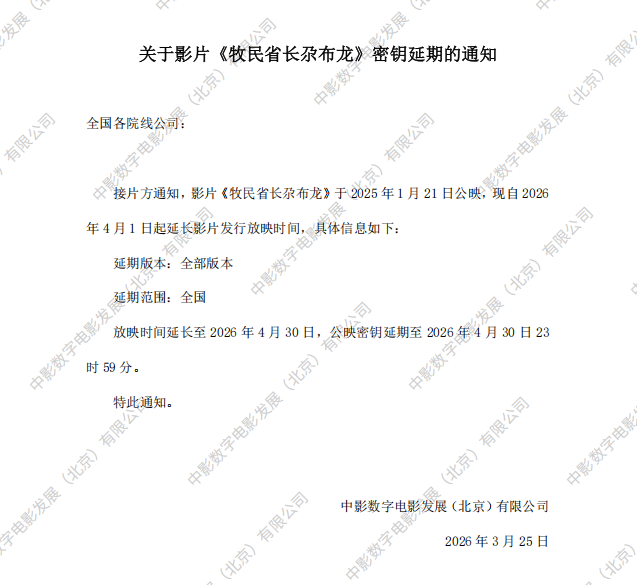 《牧民省长尕布龙》第九次密钥延期的通知