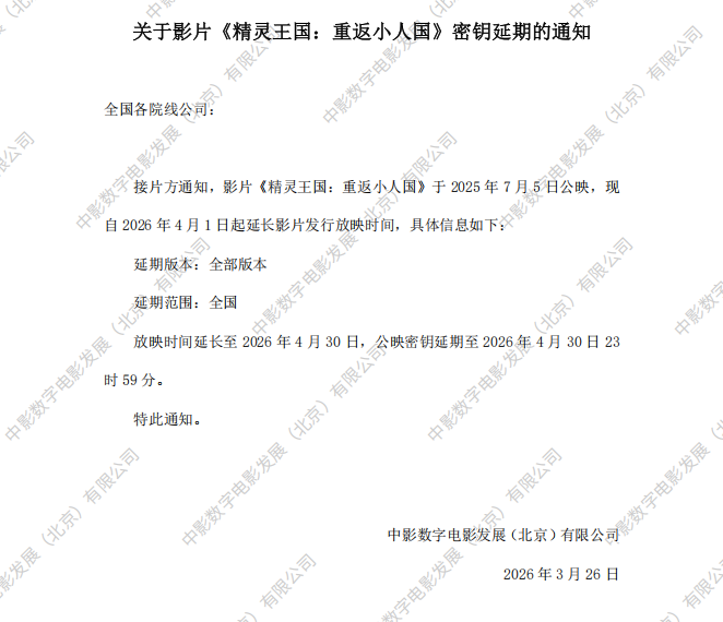 《精灵王国:重返小人国》调整票房结算标准的通知