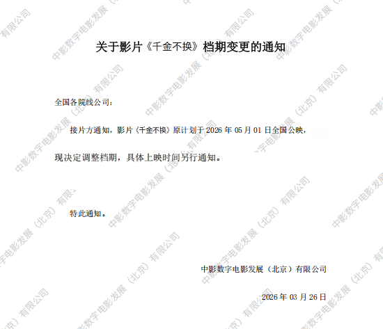 发行通知 » 《千金不换》档期变更的通知