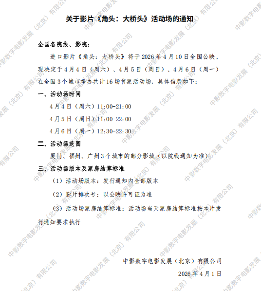 发行通知 » 《角头:大桥头》活动场的通知