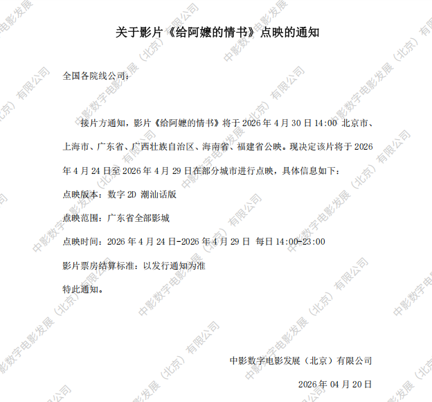 《给阿嬷的情书》点映的通知