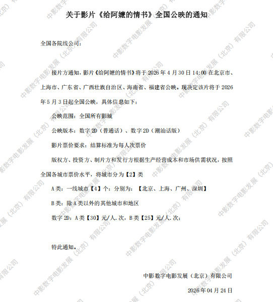 发行通知 » 《给阿嬷的情书》全国公映的通知