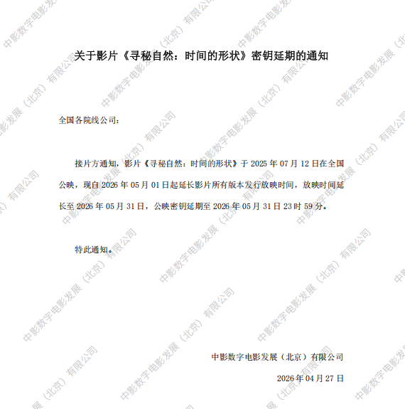 关于影片《寻秘自然:时间的形状》8次密钥延期的通知